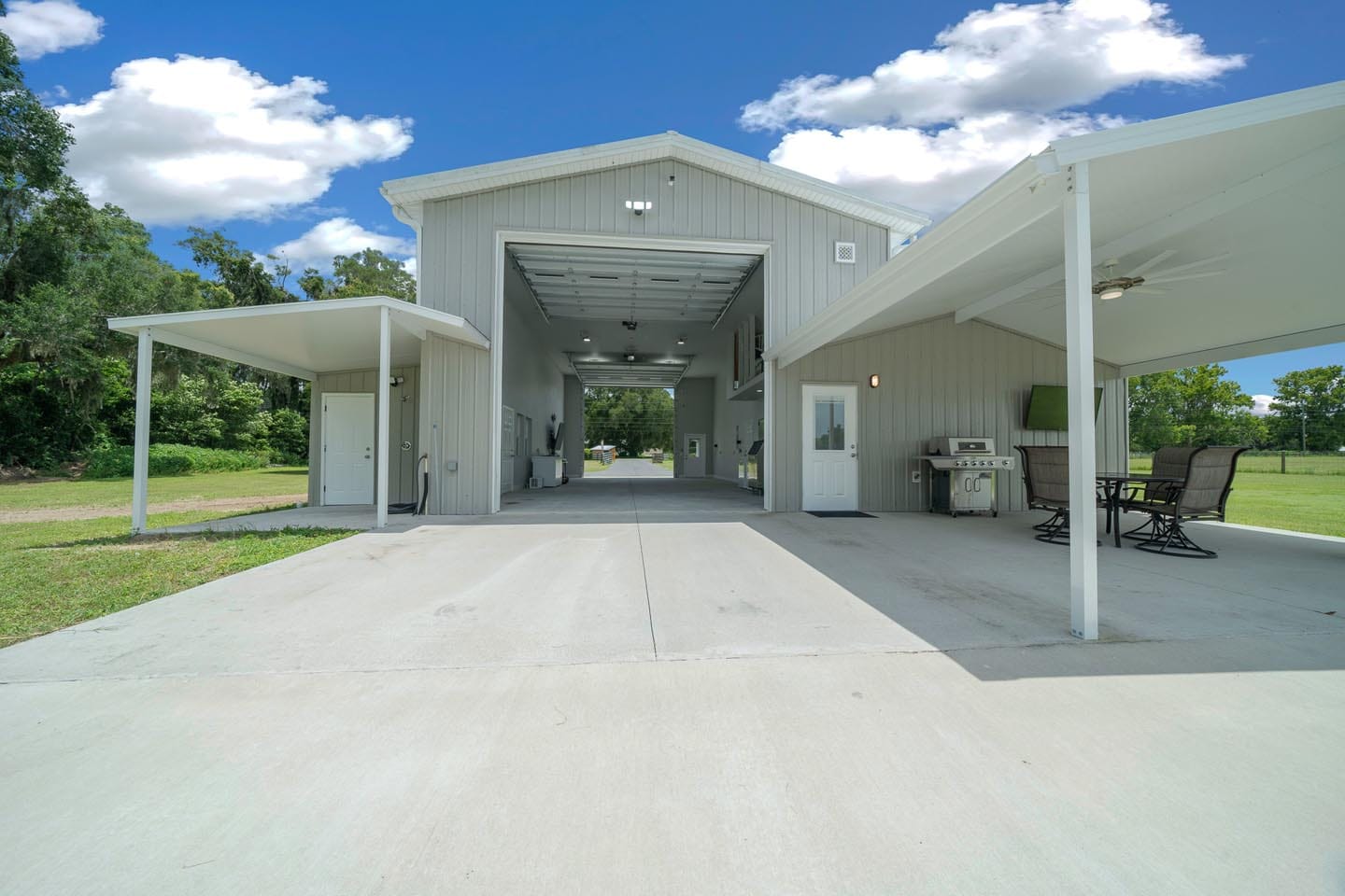 The structure includes approximately 2,333 square feet in total, with 1,175 square feet of living space and a 1,060-square-foot RV garage. Built in Citra, FL, this project reflects a practical approach to barndominium design focused on everyday usability and long-term versatility.